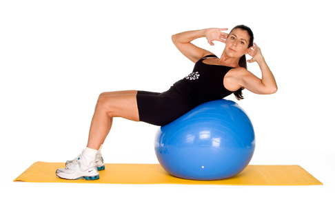 Engage the abdominal oblique muscles by moving your trunk up and rotating the shoulder to the side. Ease back to the starting position. Repeat 10-20 times each side.