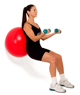 Lift the weights by flexing your elbows to 90 degrees. Resume starting position. Repeat 10-20 times.