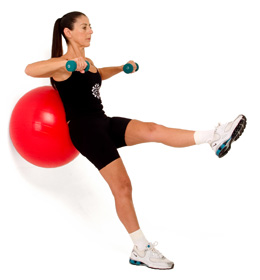Lift the weights sideways, keeping the elbows flexed, until they reach shoulder level. Resume starting position. Repeat 10-20 times.