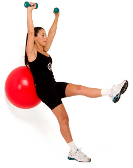 Lift the weights up above your head, without locking the elbows. Resume starting position. Repeat 10-20 times.