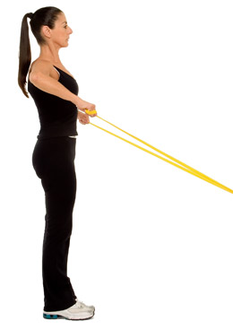 Proceed to pull the bands by flexing your elbows until your hands get to chest height. Resume the starting position. Repeat 10-20 times.