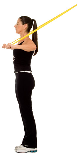 Start with your back to the wall, elbows flexed, and hands at chest level.